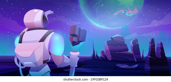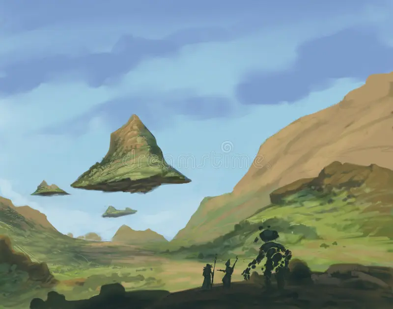 Another solution: use paid clip art services. Here’s what I got when I entered the search: clipart of a fantasy RPG character looking at a billboard in a field with an alien planet and spaceships in the twilit sky.