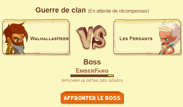 That’s when I discovered Clan Wars. You click the checkbox showing your interest, and then you’re paired up with other clans. Each day seven(*) of your brutes are selected to face brutes from the other clan. First to win four battles without running out of brutes wins the war. The day after winning or losing, you’re paired with another clan.
