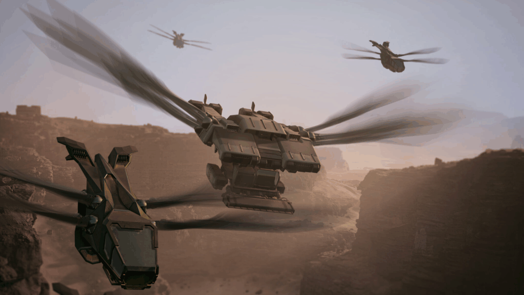 If the scout ornithopter is a sports car, the assault ornithopter is the pickup truck. With the storage module attached, it can carry a truly impressive amount of cargo between the Deep Desert and the main guild bases in the Hagga Basin. When we’re taking down the desert base ahead of the weekly everything-erasing Coriolis Storm, it is our assault thopters that are carrying the precious materials and expensive components to safety.