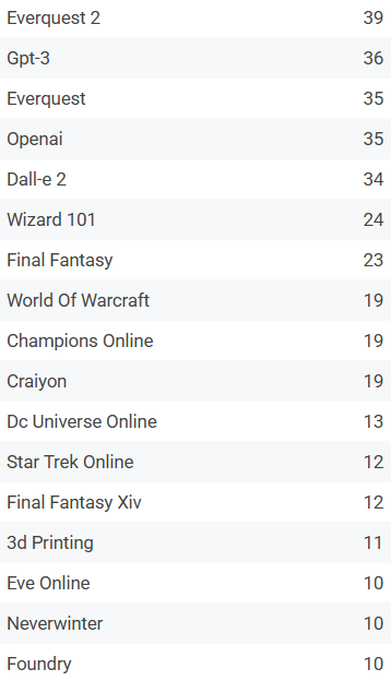 Wow. EverQuest. I was a little surprised that the original flavor EverQuest had fewer posts (in Augusts) than its new extra crispy EverQuest II incarnation. But here we are.