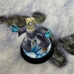 One model I’m still waiting on is Mara, the new totem for Rasputina, Abominable. We know from the art that she is a December cultist who wears a mask and has glowing blue talons for hands. Kasul found a model that looks somewhat similar. I painted it up and she joined my crew for last night’s game.