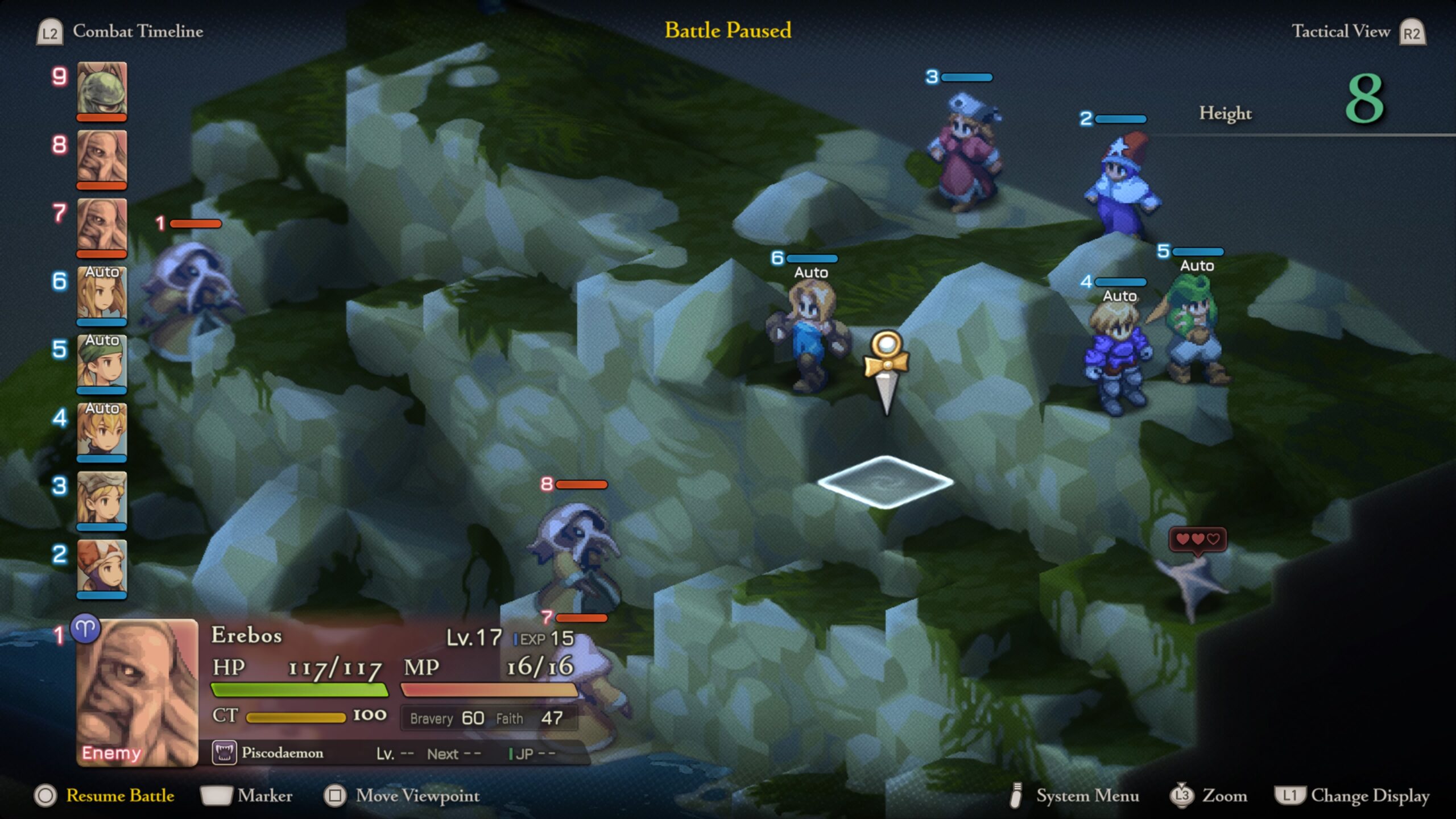 But when traveling around the map, I can’t help but spend some time in every battlefield I pass. It’s the only time when I can chance going to Auto Battle and just watching the army relaxing with nothing to occupy them besides killing meanies, gaining job points, and looking forward to their next class.