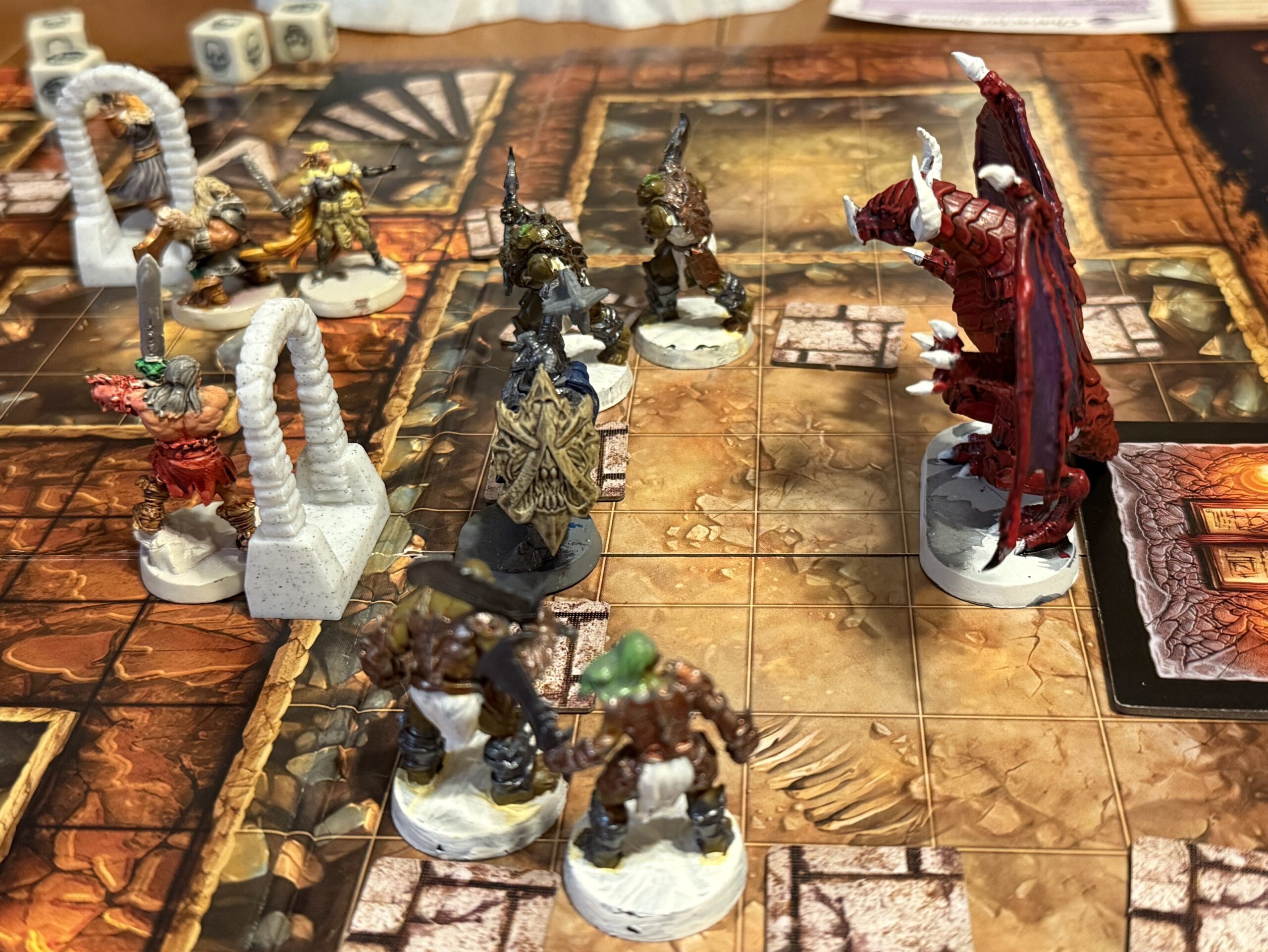 A secret door from the exit of the secret passage led us into the lair proper; and in ten minutes, we discovered Qwindrak’s ritual room. He was at the altar, and he was well guarded with a half dozen orcs. He turned to face us, and immediately transformed into a dragon.