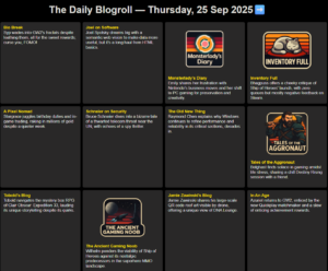 I was pretty disappointed when Blaugust 2025 came to a close. Not in Blaugust; no, that was fantastic. Disappointed in me, because I was just so busy that I wasn’t able to hunt down and read more than a fraction of the posts, much less blog much myself. The Blaugust Discord was too busy, and while I would read any post that surfaced in my Mastodon instance (gamepad.club), I couldn’t hunt down the ones that were published to Facebook, Twitter, Instagram, YouTube, or whatever else.