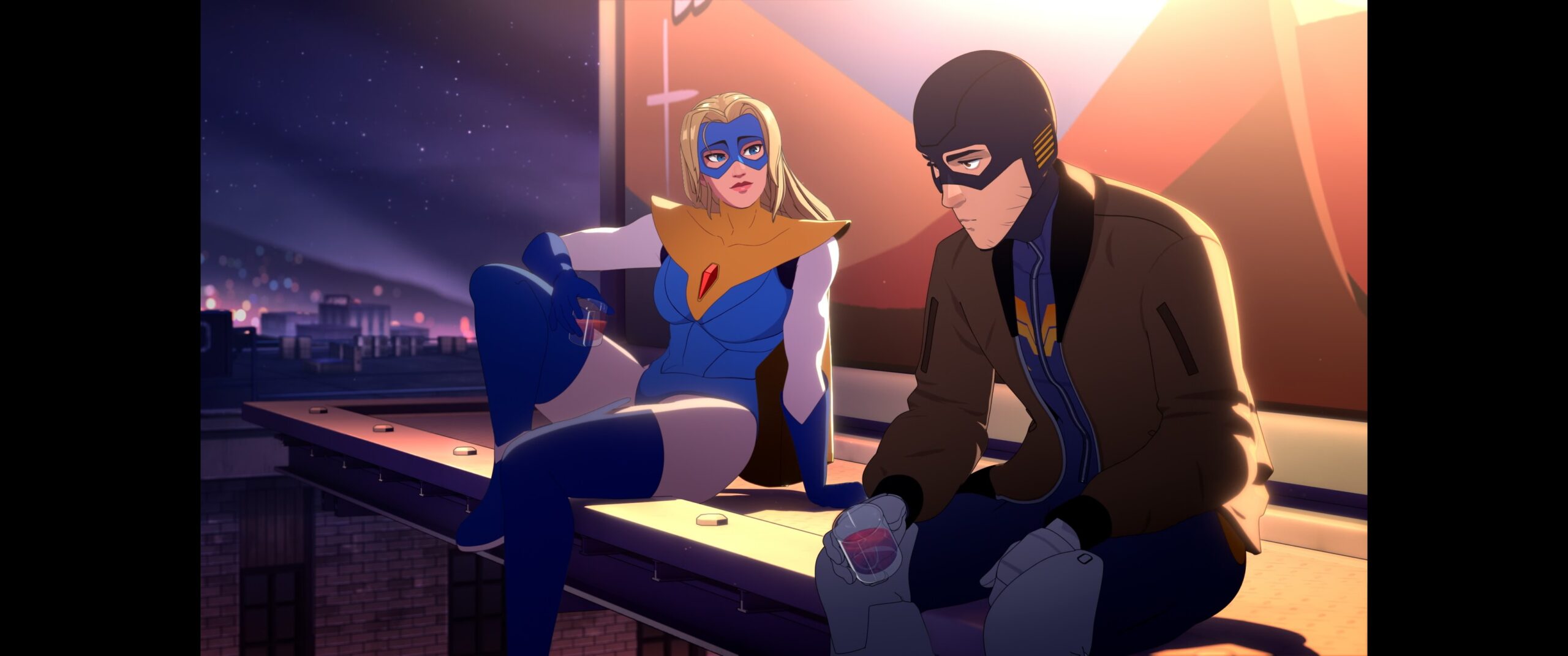 Blonde Blazer and Mecha Man have a moment
