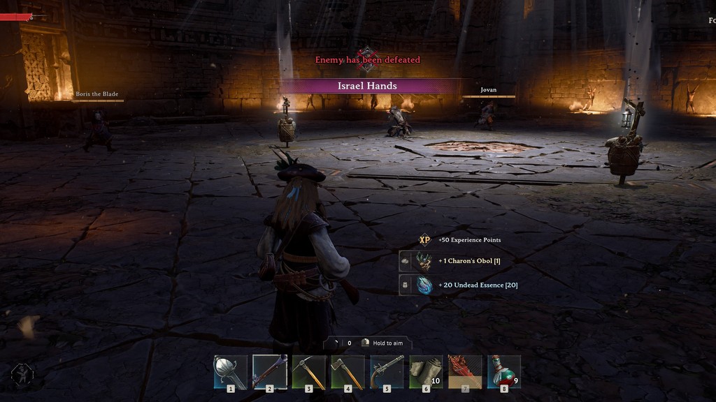 The game rewards careful attention to what your opponent is planning. Israel Hands is a bad dude, but he has a spectral second self that, once summoned, does some nasty stuff depending upon what weapon it is holding. But the penalty for missing or not dodging is heinous. We just ended up kitting him, letting our pigs tank a little, and shooting him when we had the chance.