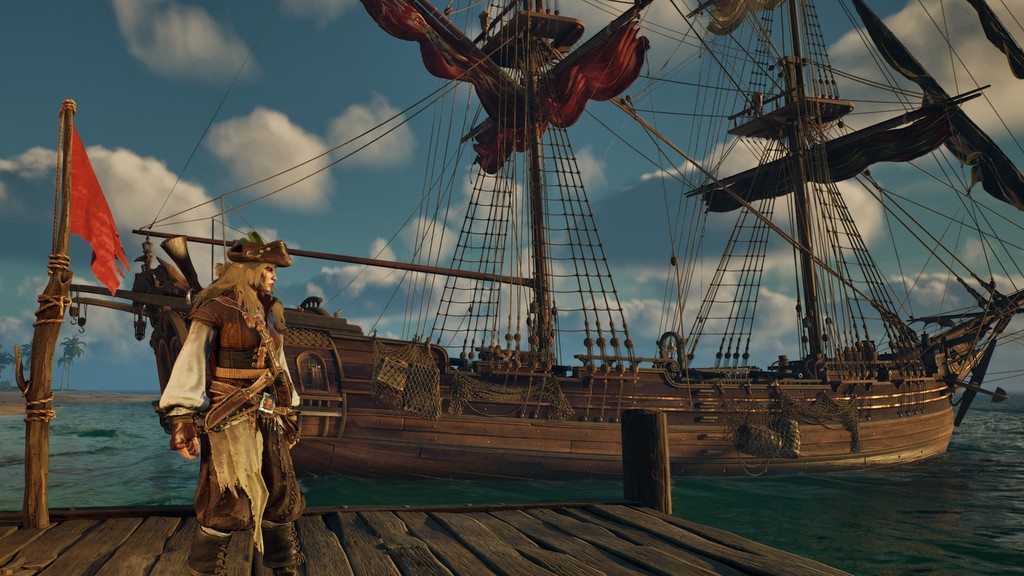 Especially since I started wearing the Marksman outfit. Windrose doesn’t have classes as you would normally think of them; in Windrose, your class is what you wear, and changing your class is as simple as putting on a new outfit. Gear upgrades don’t drop. The game right out tells you that you can buy the patterns for whatever set you like in Tortuga, the common hub that opens up near the start of the game. Each set has bonuses for wearing two or four pieces of a five piece set, and these bonuses increase as you upgrade your gear. Upgrading your outfit and weapons requires lots of resources, so see above about the iron mine.